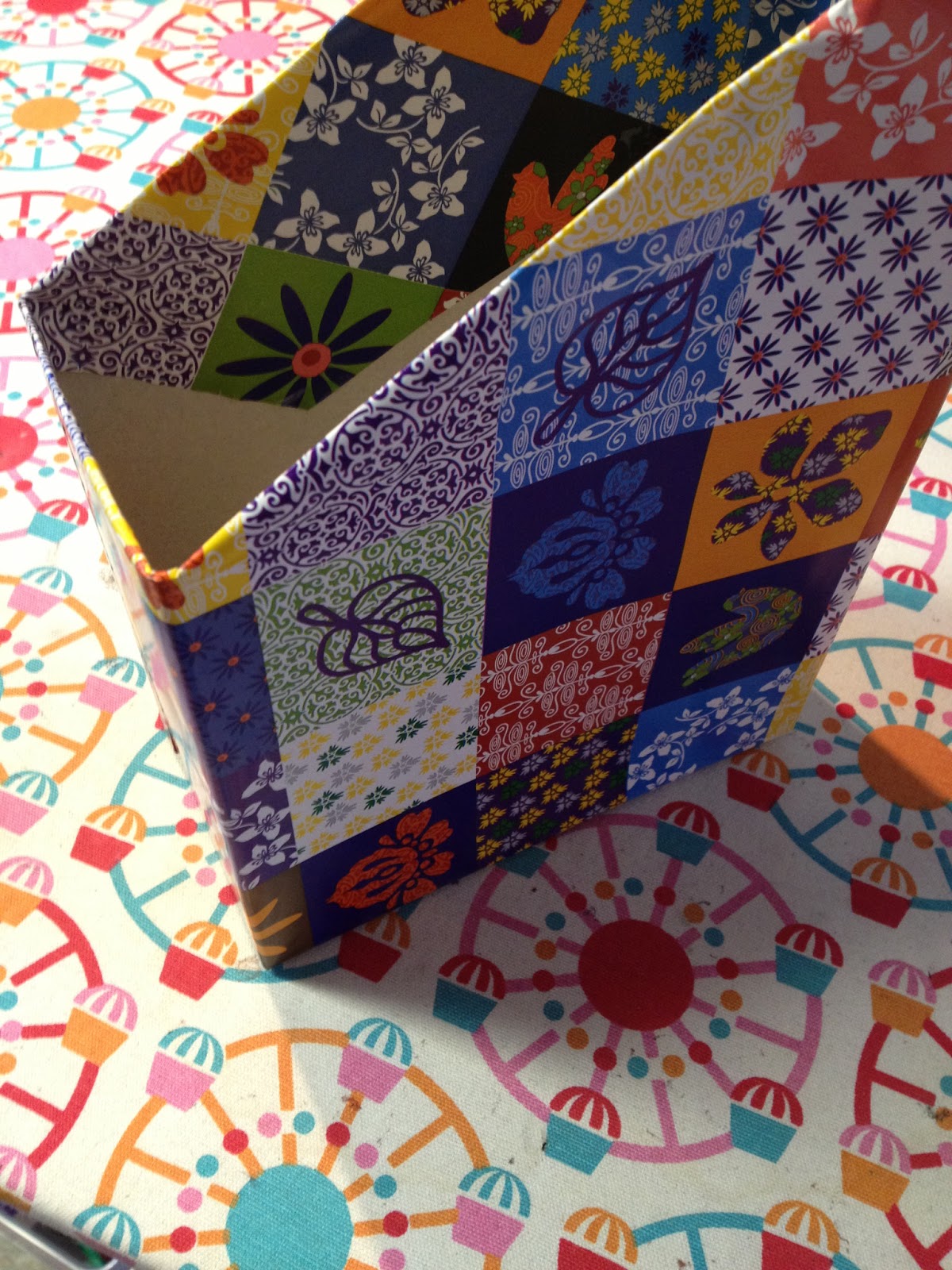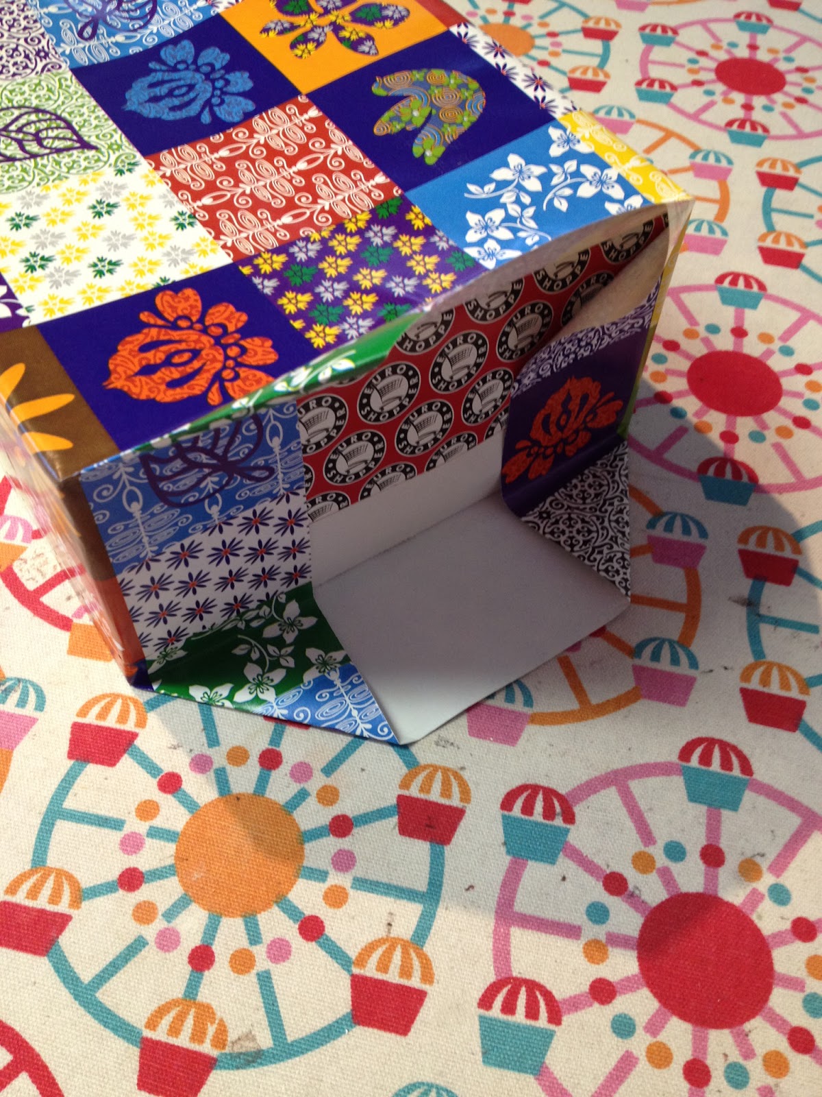 Tänk dig nu att du ska slå in ett paket. Limma ena sidan (jag började fram på).